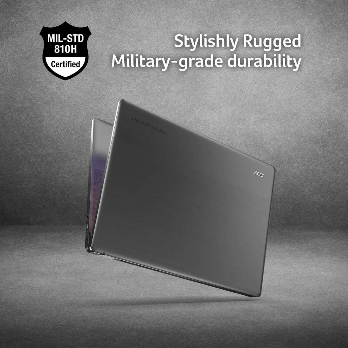 Worry less about your device and focus on your work. This high-performance Chromebook Plus has independently verified MIL-STD-810H7 military-grade durability.