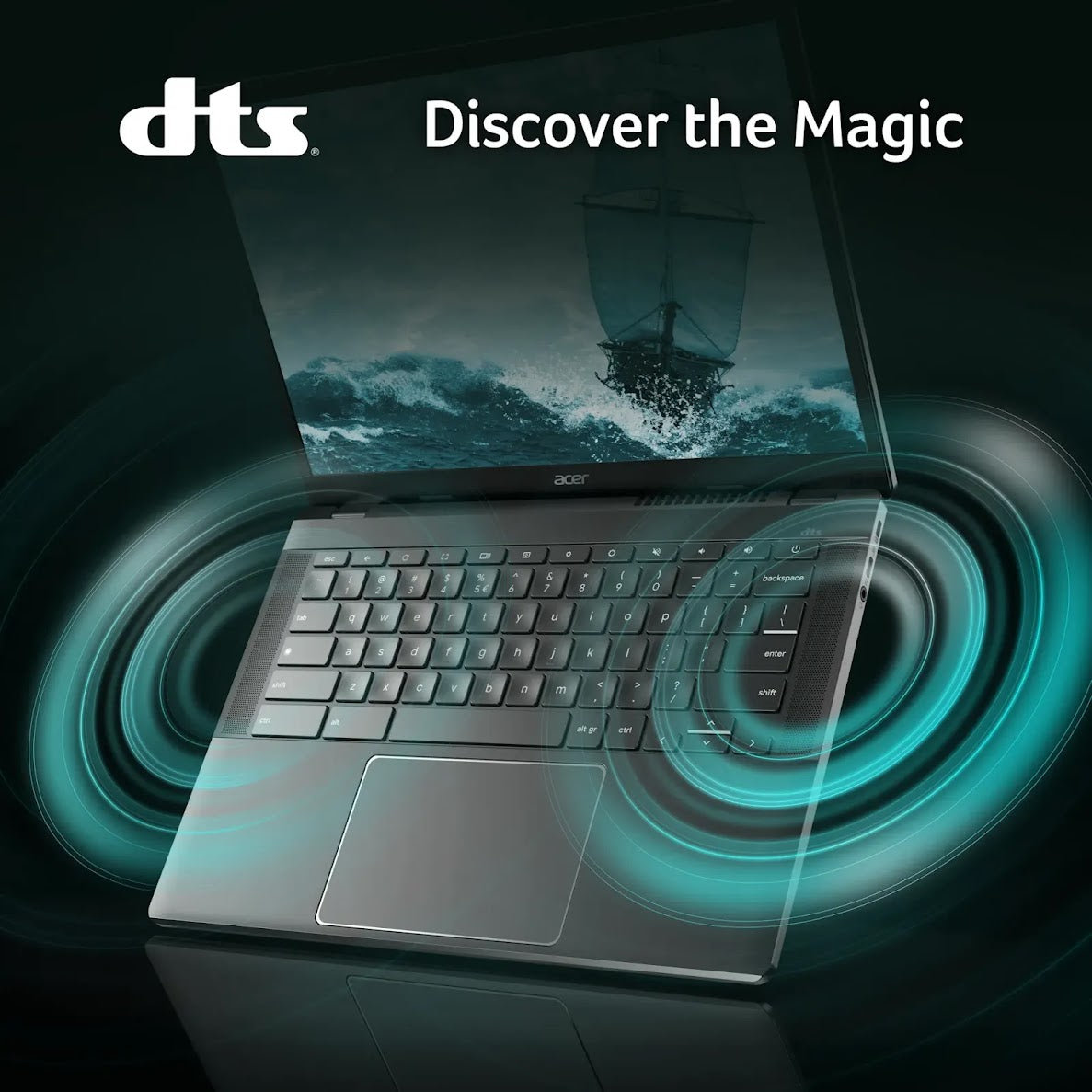 DTS® Audio and a fast-charging battery with 12 hours of battery life make this 14-inch Chromebook Plus perfect for on-the-go entertainment. Take it just about anywhere without needing its adapter while you enjoy high-quality audio from the two upward-facing speakers.