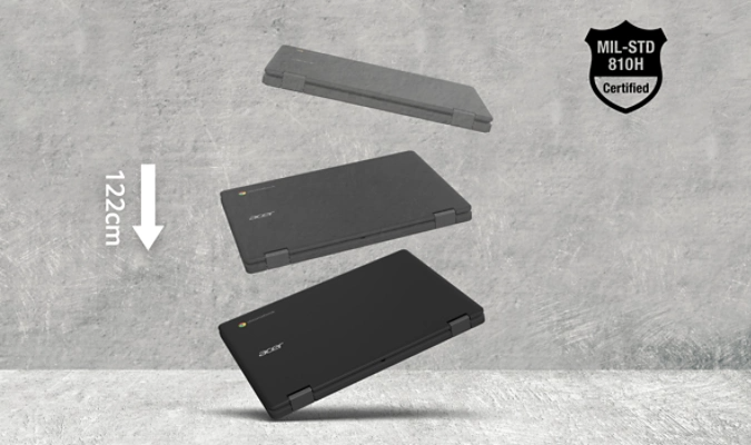 This ruggedized Chromebook features MIL-STD-810H certification, widened brackets, a shock-absorbent bumper to protect from drops as high as 122 cm, and a spill-resistant keyboard that protects components from up to 330 ml of liquid.